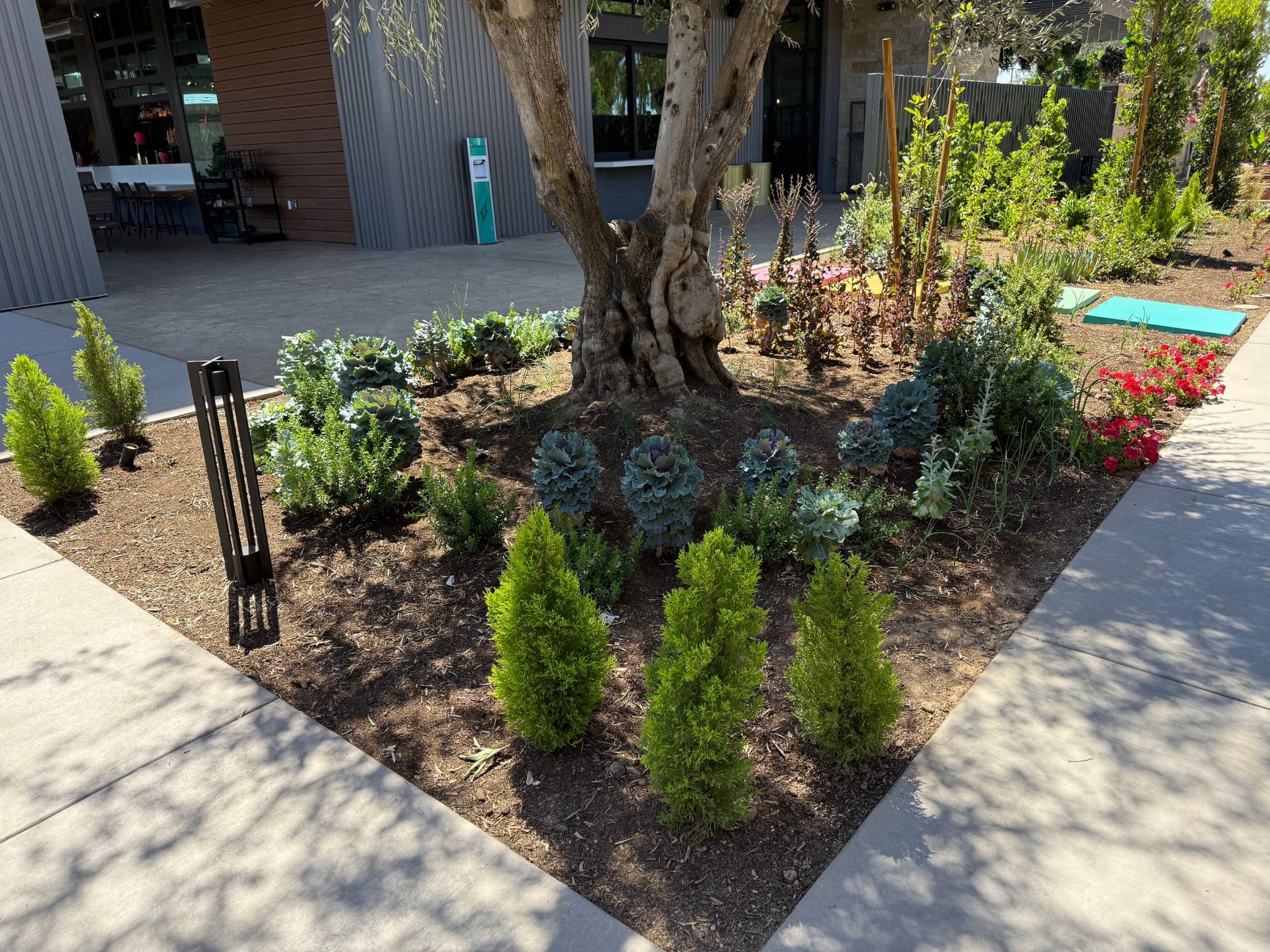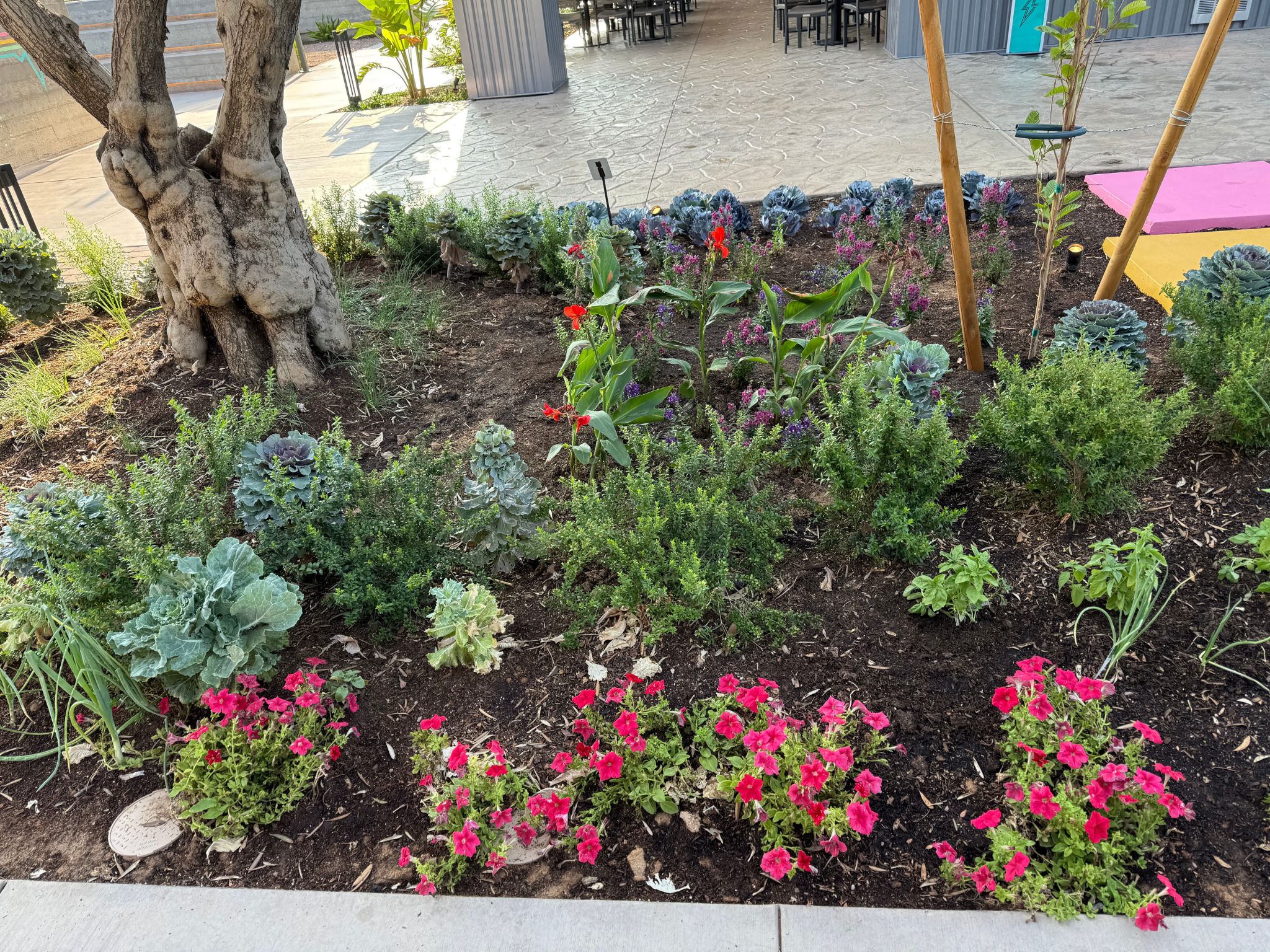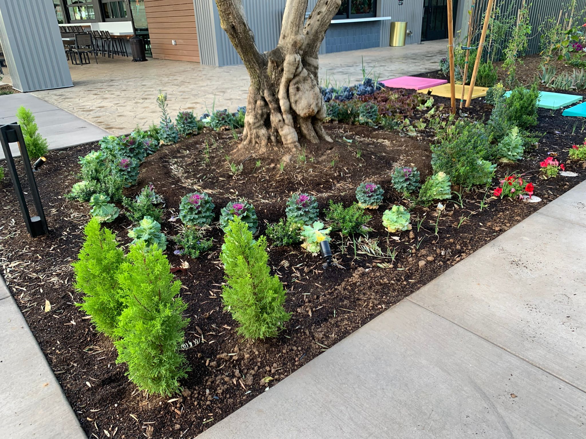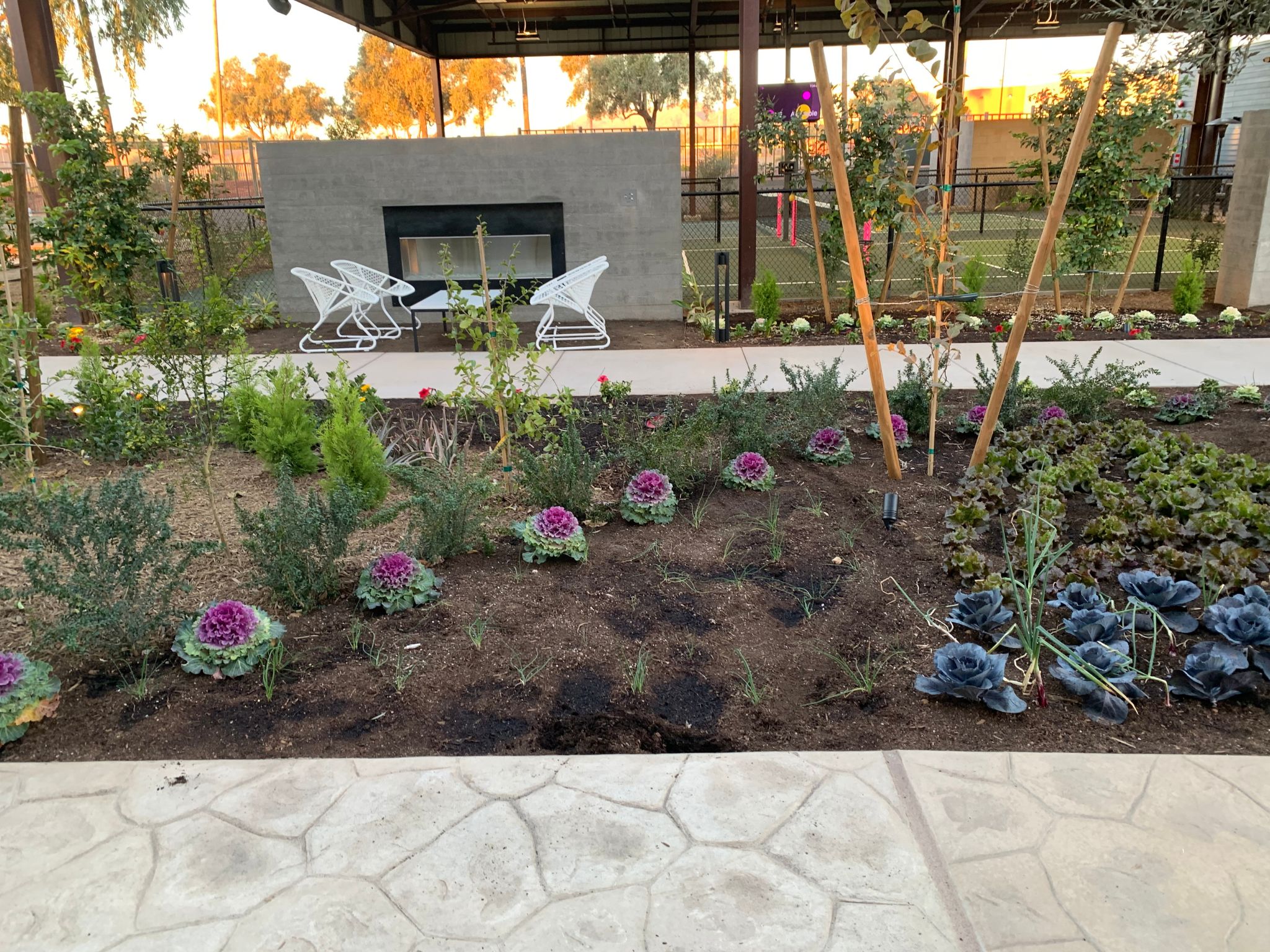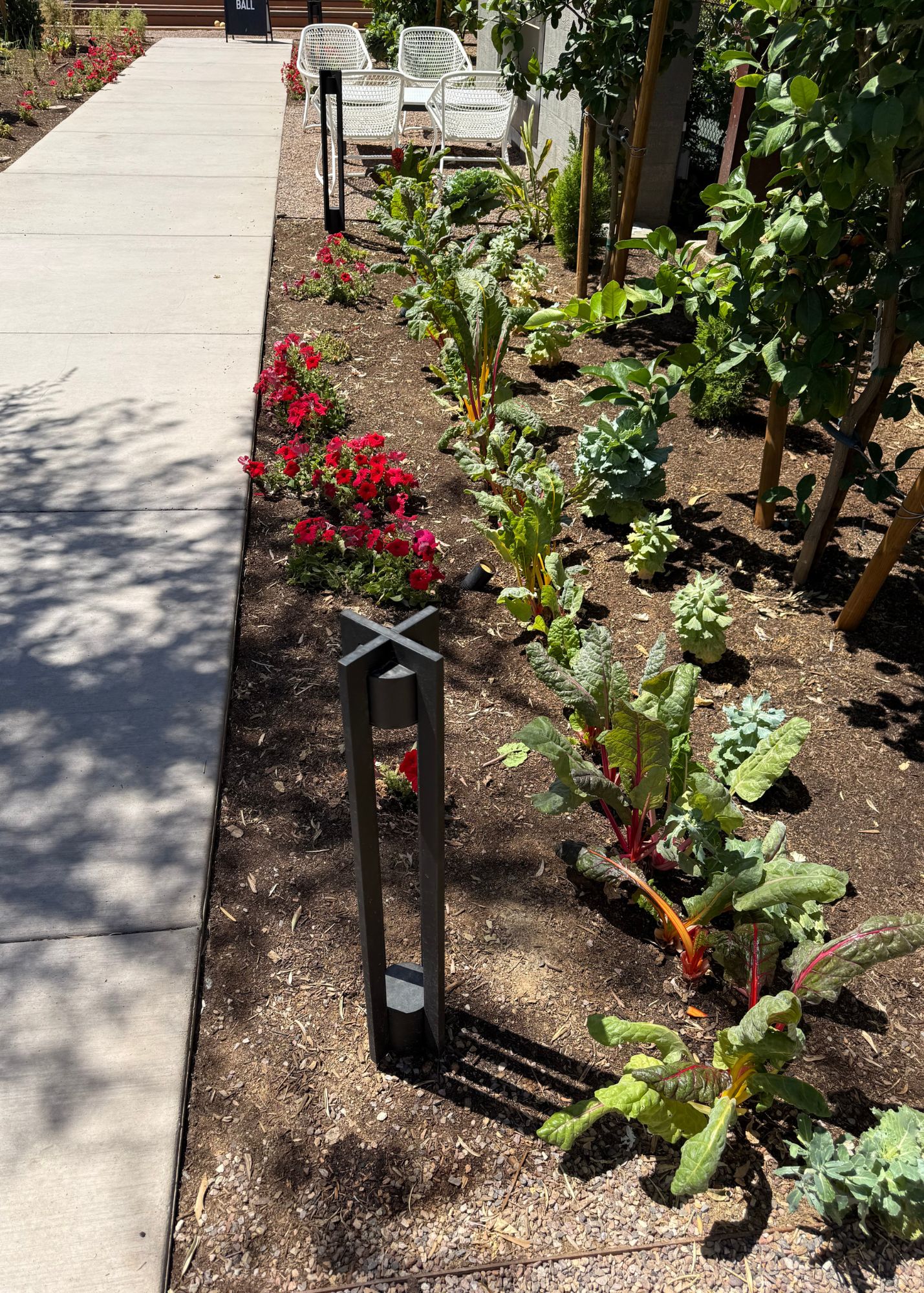 Creating this immersive space came with challenges—from navigating diverse microclimates and sun/shade conditions to meeting landlord and city requirements. Construction delays and extreme summer heat tested the timing and resilience of the kitchen garden, but cooler seasons brought recovery and growth. From shaded corners to sun-scorched raised beds, the result is a thriving, sustainable landscape that proves beauty and function can flourish anywhere.