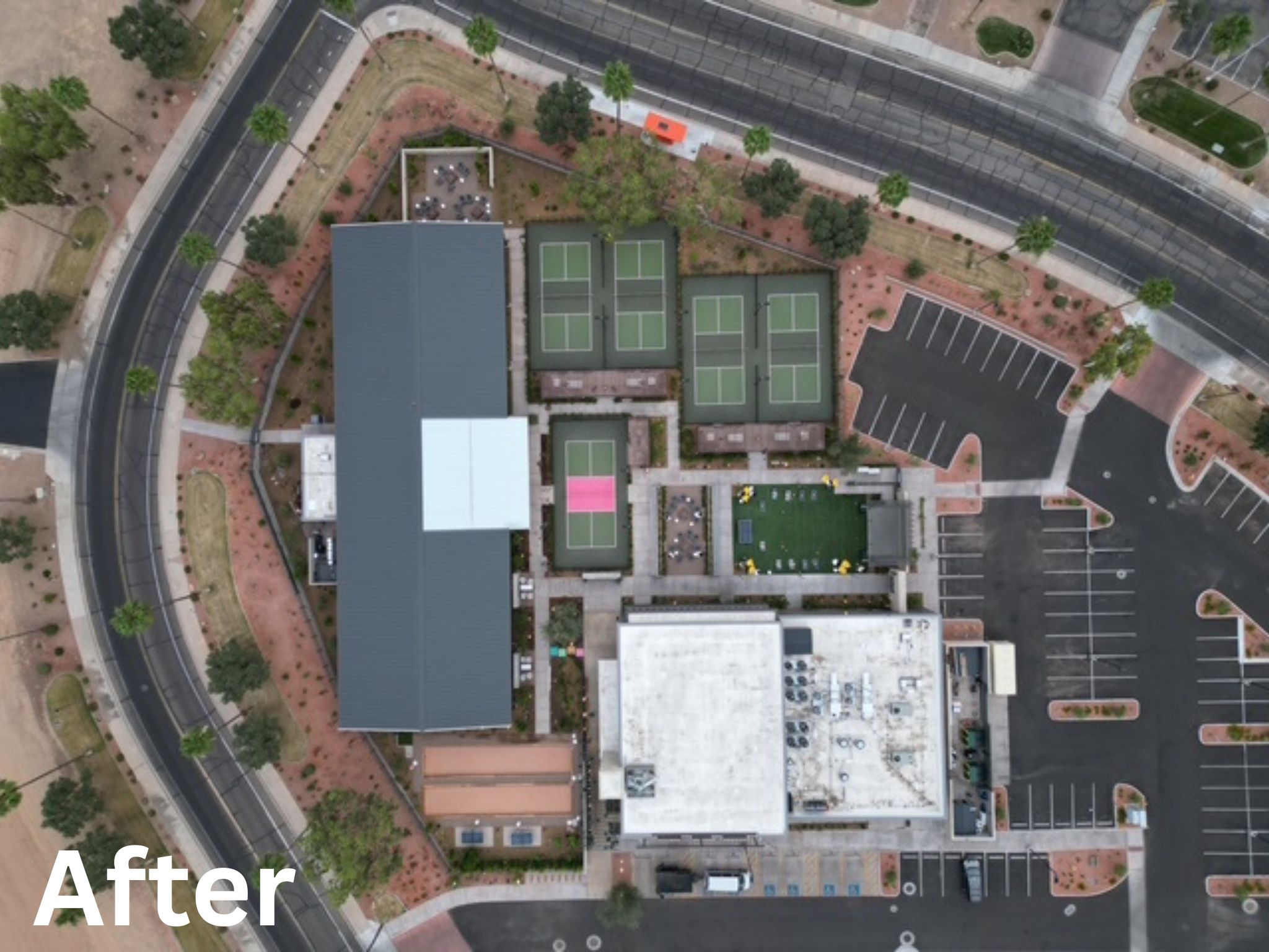 The Hip 12-Court Pickleball Complex is a dynamic fusion of sport, entertainment, and sustainability. Guests enjoy high-tech pickleball courts, private cabanas, bocce ball, fire pits, and live music—all set within vibrant edible landscaping that feeds into a globally inspired menu. After the game, unwind in the spacious two-story restaurant with bold flavors and garden-fresh cocktails. It’s an elevated experience that’s electric from start to finish.